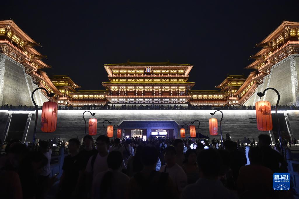 夏夜時(shí)分,河南省洛陽(yáng)市隋唐洛陽(yáng)城國家遺址公園應天門(mén)遺址博物館燈火輝煌,熱鬧非凡,滿(mǎn)目的人間煙火再現千年古都繁華盛景。