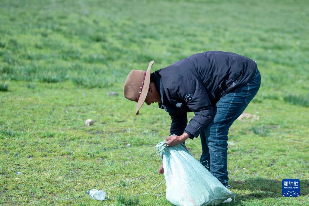 8月11日,次扎達在轉換牧場(chǎng)時(shí)撿拾生活垃圾。