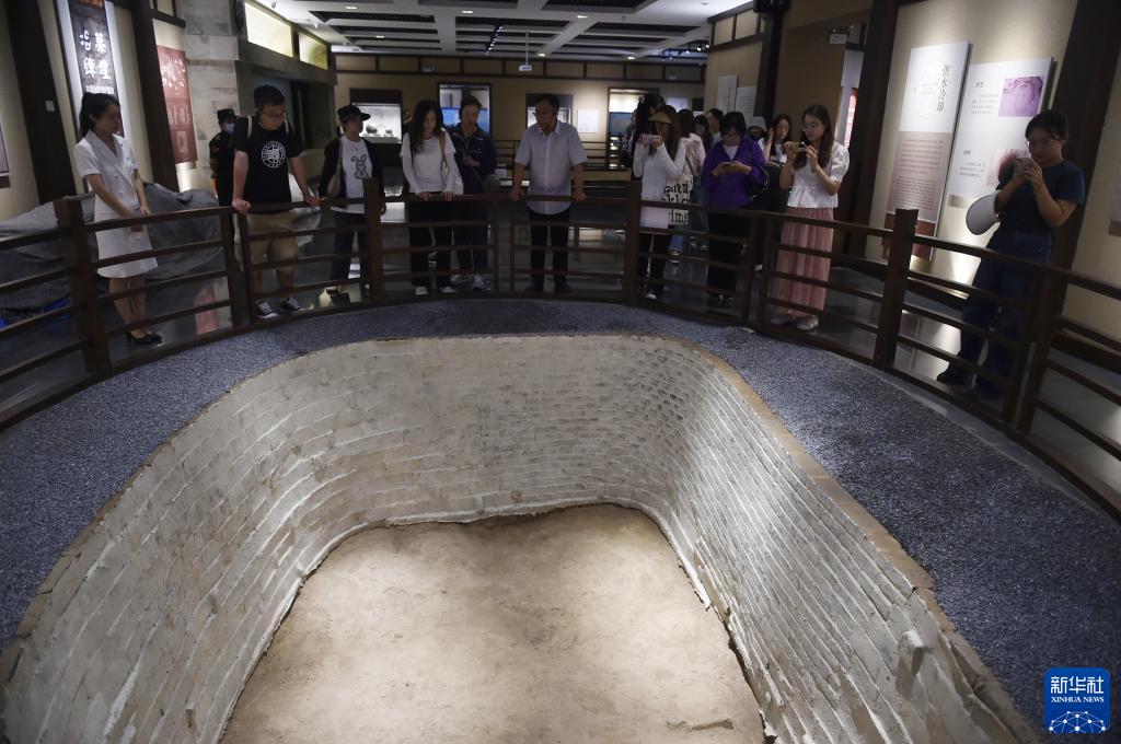8月8日,參加集中采訪(fǎng)的媒體記者在位于河南省鄭州市的古滎漢代冶鐵遺址博物館參觀(guān)采訪(fǎng)。