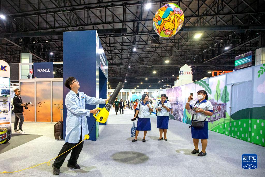 8月11日,在泰國曼谷舉辦的泰國國家科學(xué)技術(shù)展上,參觀(guān)者在中國館觀(guān)看沙灘球實(shí)驗。