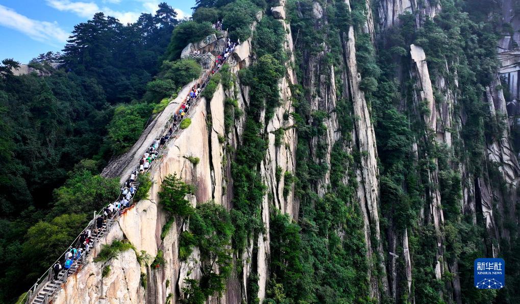 進(jìn)入暑期旅游旺季,位于陜西省渭南市的西岳華山迎來(lái)五湖四海的游客。據了解,自7月以來(lái),華山景區日均游客接待量已超過(guò)2萬(wàn)人次。