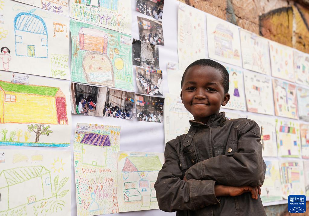 8月11日,在肯尼亞內羅畢的馬薩雷貧民區,一名兒童在“貧民區嘉年華”活動(dòng)中的畫(huà)展前留影。