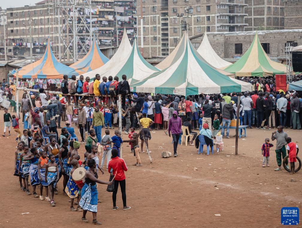 8月11日,在肯尼亞內羅畢的馬薩雷貧民區,人們在“貧民區嘉年華”活動(dòng)上觀(guān)看表演。