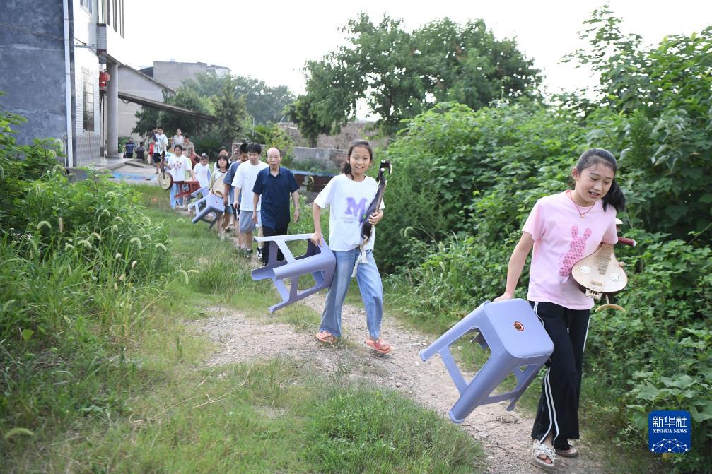 8月12日,李舒尤(右三)帶著(zhù)學(xué)生們一起到枧頭洲村戶(hù)外上課。