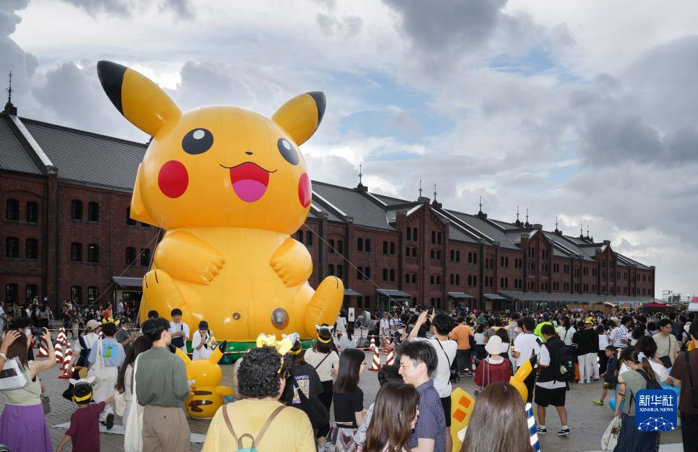 8月13日,一個(gè)巨型充氣皮卡丘豎立在日本橫濱未來(lái)港紅磚倉庫前。