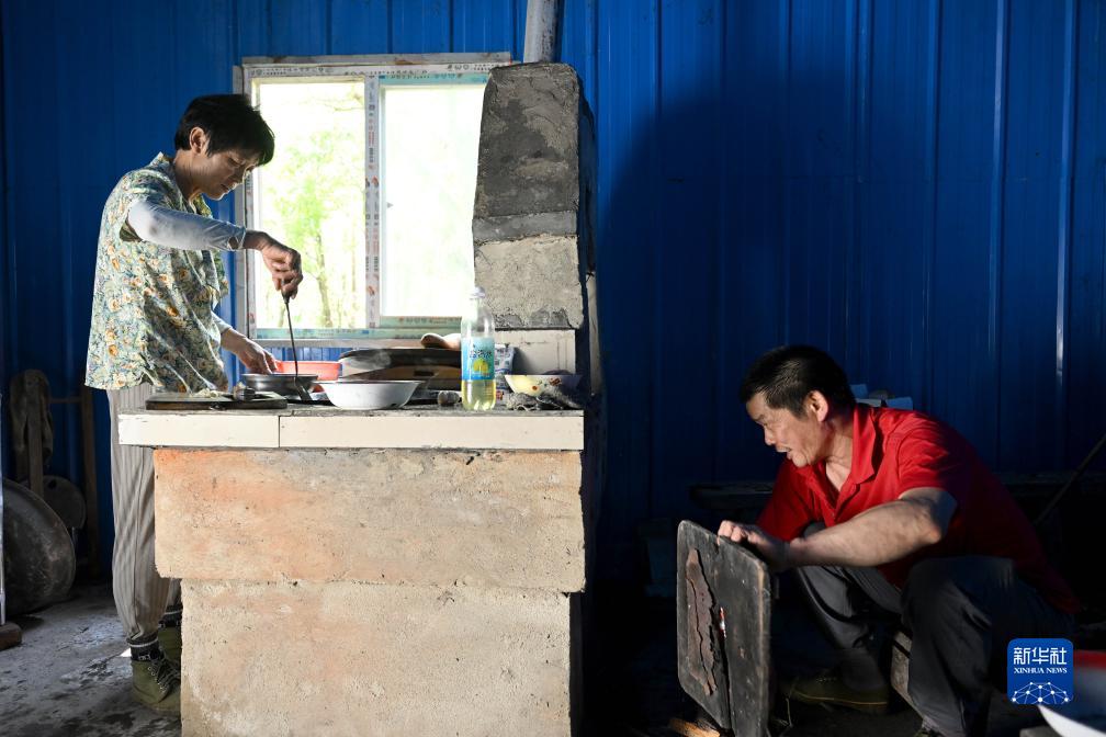 8月12日,在安徽天馬國家級自然保護區天堂寨管理站的一處管護站,王克東和高開(kāi)玉生火做飯。每年10月1日至次年4月30日的防火關(guān)鍵期,王克東夫妻倆會(huì )在這里長(cháng)期居住。