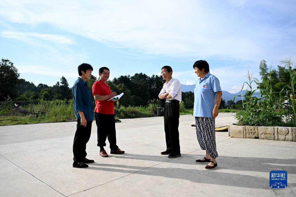 8月11日,在安徽天馬國家級自然保護區天堂寨管理站,王克東和高開(kāi)玉向村民宣傳森林防火知識。