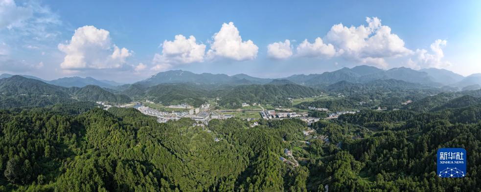 這是8月12日拍攝的安徽天馬國家級自然保護區天堂寨管理站一角(無(wú)人機全景照片)。