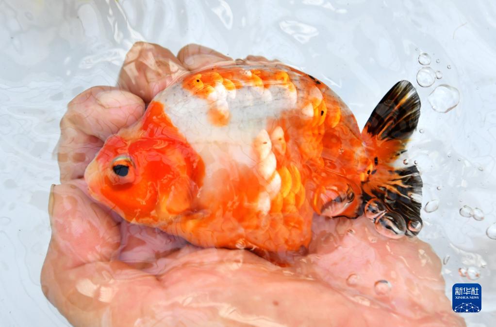 在福州市閩侯縣南通鎮古城村春園鯉生態(tài)養殖場(chǎng),養殖戶(hù)向記者展示他們養殖的福壽品種金魚(yú)(8月9日攝 )。福壽是福州蘭壽金魚(yú)的簡(jiǎn)稱(chēng),經(jīng)過(guò)幾代人改良的福州蘭壽,多次在全國各類(lèi)金魚(yú)大賽中奪冠。