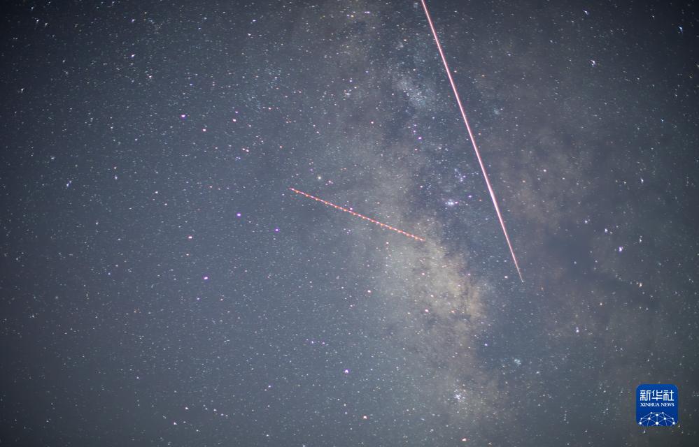 在四川省三臺縣魯班鎮,英仙座流星雨劃過(guò)夜空(8月13日攝)。