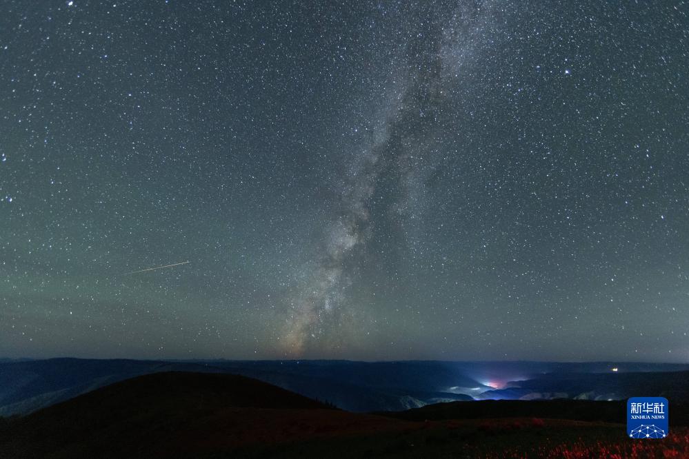 在四川省紅原縣安曲鎮,英仙座流星雨劃過(guò)夜空(8月13日攝)。