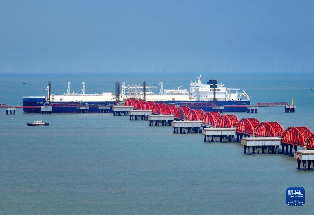 8月13日,裝載著(zhù)16.8萬(wàn)立方米LNG的塞浦路斯籍“利特克”輪靠泊位于江蘇省如東縣洋口港的LNG碼頭(無(wú)人機照片)。