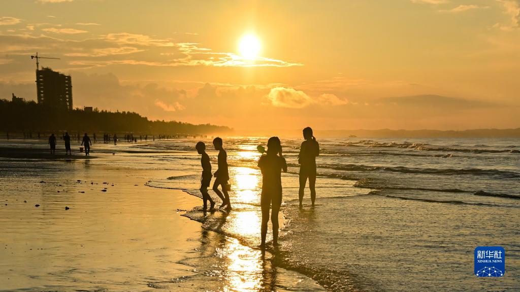 8月14日,日出時(shí)分,游客在金灘游玩。