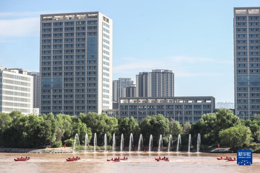 8月14日,參演隊員在黃河蘭州段奧體中心附近水域開(kāi)展水域救援實(shí)戰化演練。