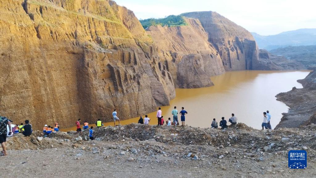 8月14日,人們聚集在緬甸克欽邦帕甘鎮發(fā)生坍塌的玉石礦區。