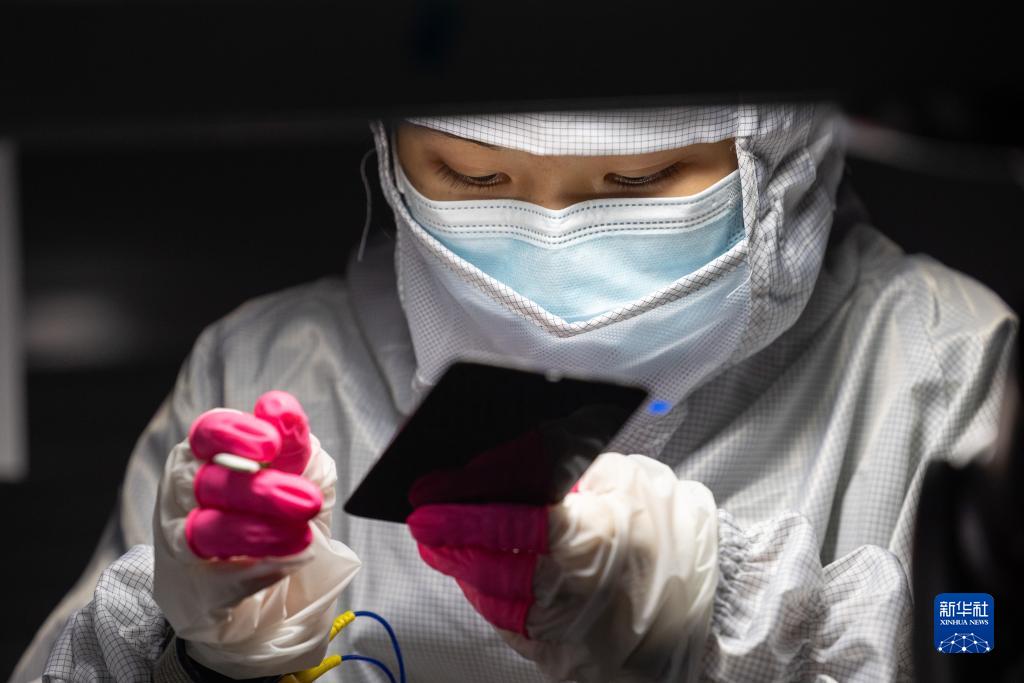 8月14日,在贛州市同興達科技有限公司(金鳳梅園廠(chǎng)區),工作人員進(jìn)行手機屏幕FV2外檢。