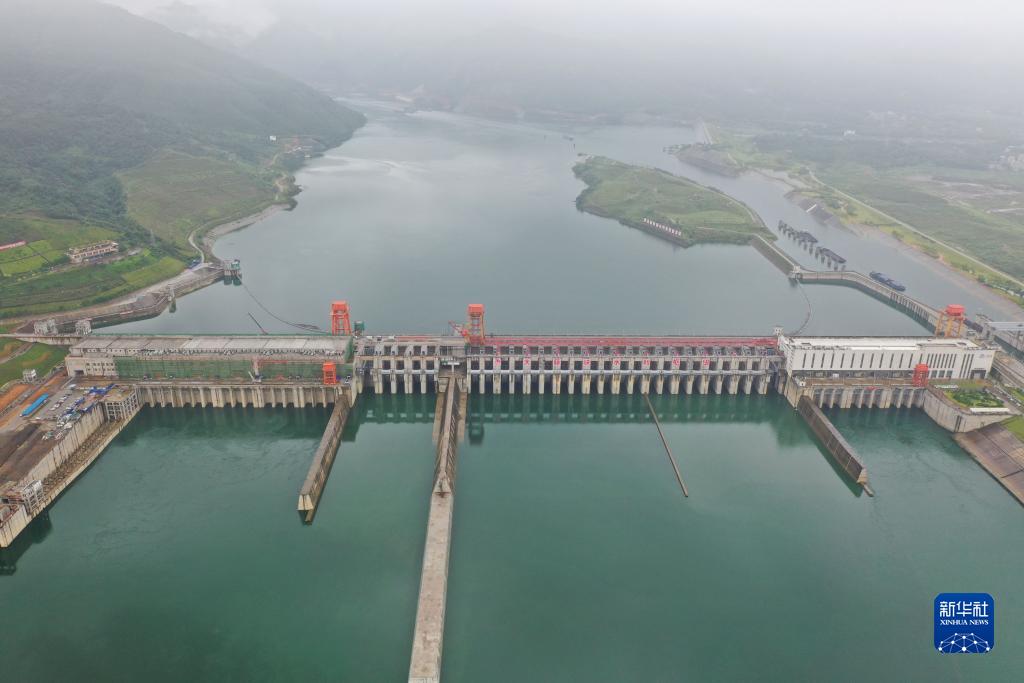 這是8月15日拍攝的廣西大藤峽水利樞紐工程(無(wú)人機照片)。