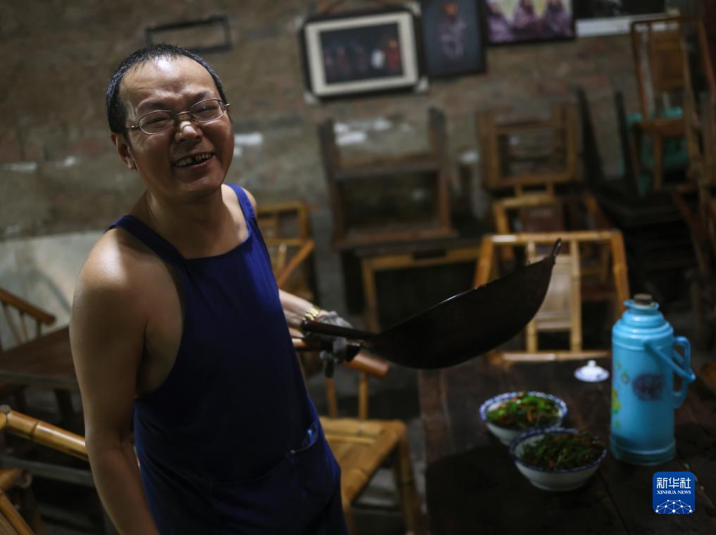 觀(guān)音閣老茶館老板李強(8月7日攝)。