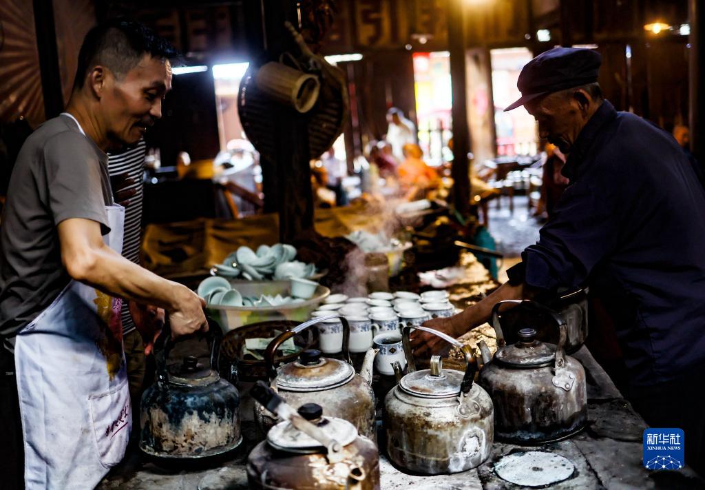 在成都市雙流區彭鎮楊柳河畔,有一個(gè)已有百年歷史被稱(chēng)為觀(guān)音閣的老茶館。老茶館的得名,來(lái)源于民間神話(huà),相傳因茶館里供奉的觀(guān)音菩薩保佑而得以在百年前的一場(chǎng)大火中幸存。青磚加木質(zhì)結構的老茶館斑駁破舊,木柱木梁灰青小瓦,脫落的石灰墻中可見(jiàn)原先打底的竹籬。正中屋檐處一扇天窗和兩頭的進(jìn)門(mén)處能透進(jìn)些許自然光線(xiàn),使屋里顯得較為昏暗。茶館的地面保持著(zhù)原先的硬土,久而久之已經(jīng)坑坑點(diǎn)點(diǎn)形成錯落不平的紋理。老茶館現已被列為成都第五批歷史建筑保護名錄?,F任店主李強,成都雙流區人。