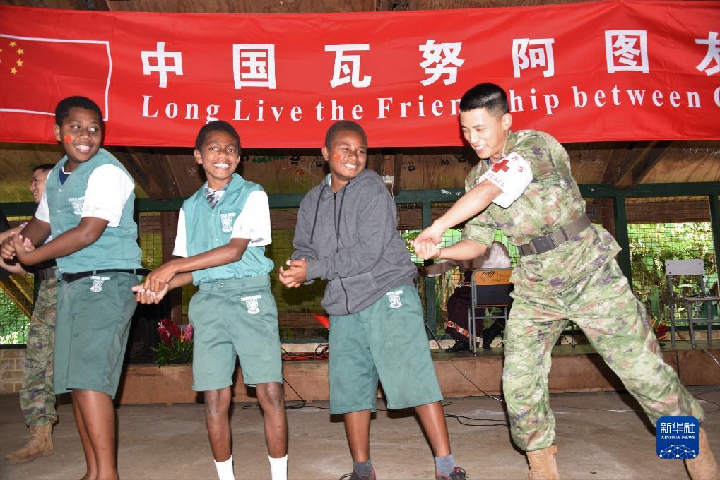 8月11日,中國海軍“和平方舟”號人員在瓦努阿圖的一所學(xué)校教學(xué)生們跳“洗手操”。