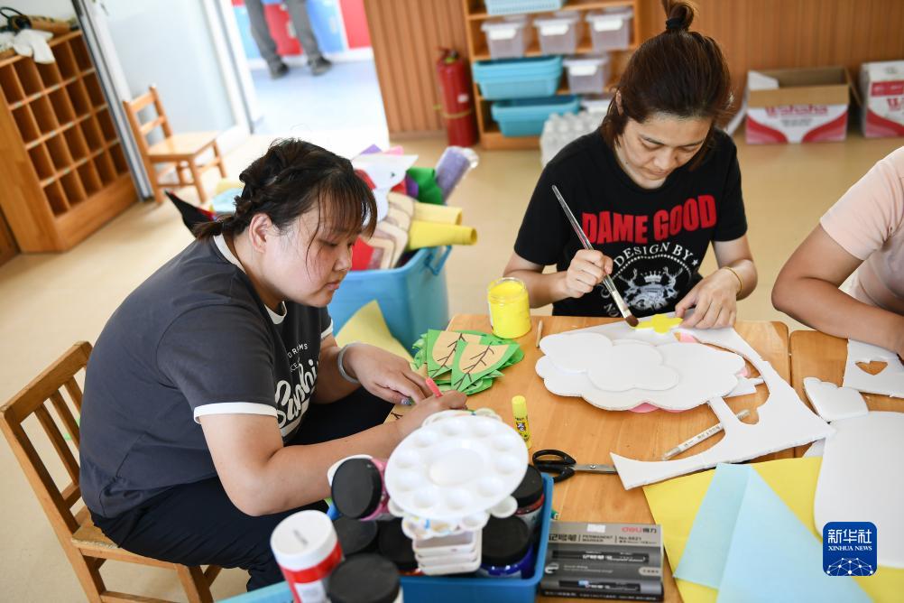 8月15日,在北京市房山區河北鎮中心幼兒園東莊子分園,教師在一處臨時(shí)騰出的教室制作歡迎入學(xué)的裝飾品。