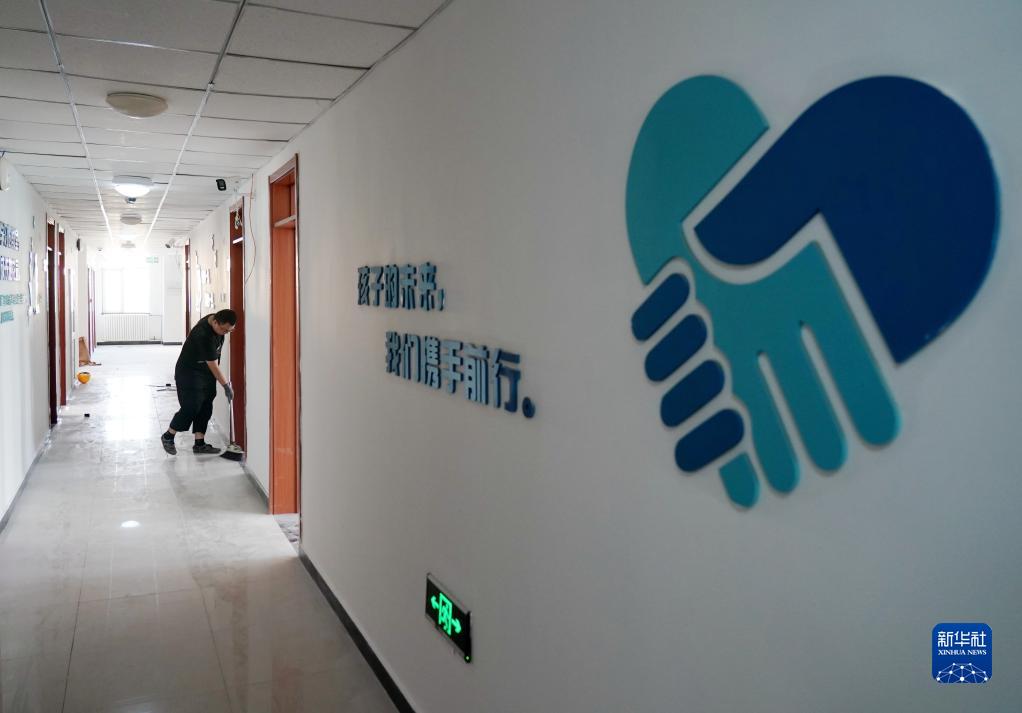8月14日,北京市門(mén)頭溝區京師實(shí)驗中學(xué)工作人員在打掃新布置的教室,以迎接借址開(kāi)學(xué)的師生。