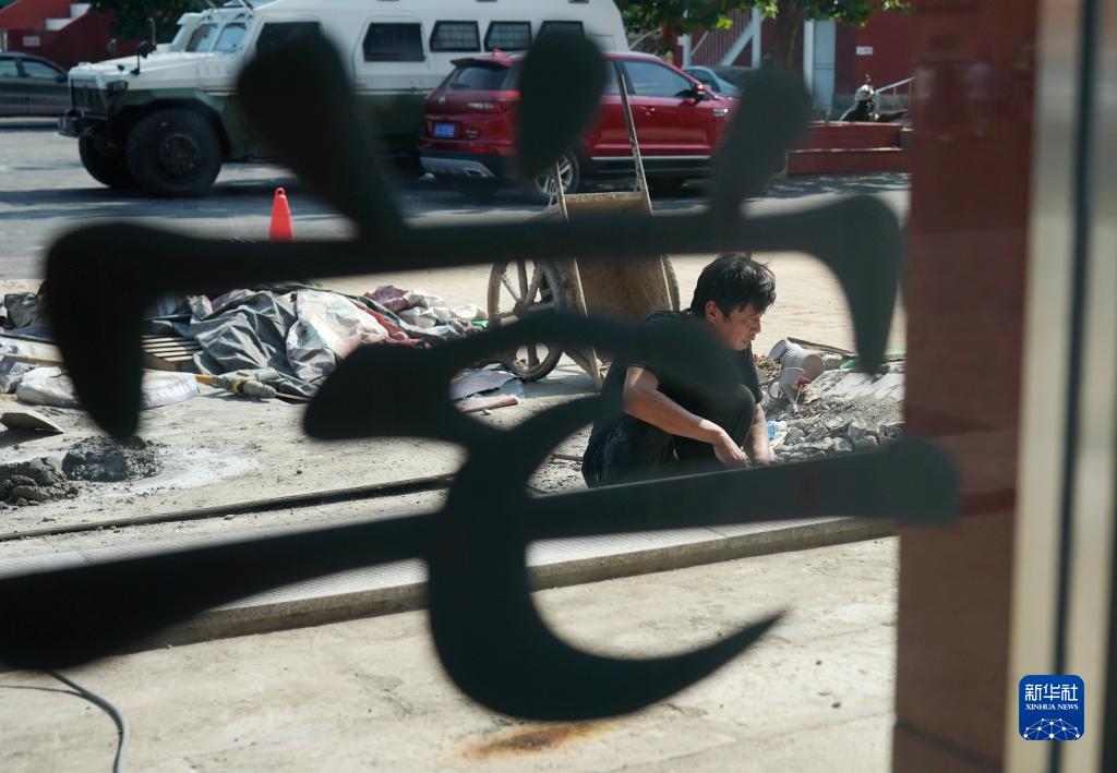 8月14日,工人抓緊修繕北京市門(mén)頭溝區妙峰山民族學(xué)校。