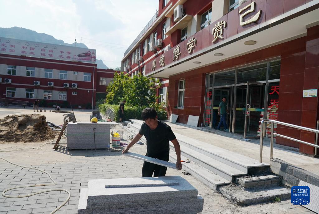 8月14日,工人抓緊修繕北京市門(mén)頭溝區妙峰山民族學(xué)校。