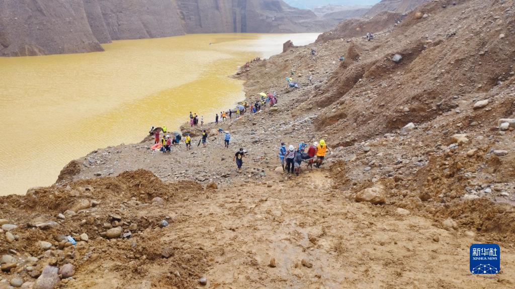 8月15日,在緬甸克欽邦帕甘鎮,救援人員在玉石礦場(chǎng)坍塌事故現場(chǎng)搜救到一名遇難者。