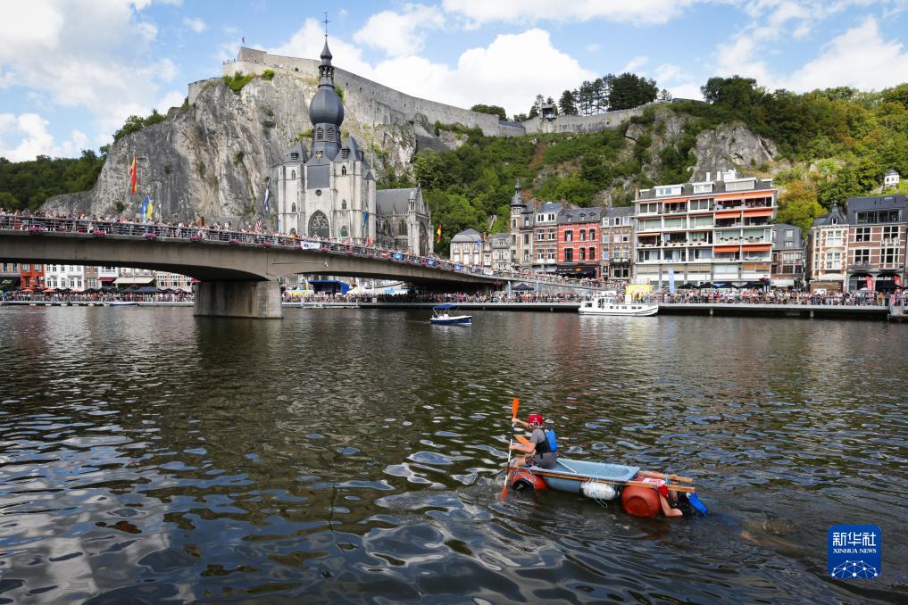 當日,“浴缸劃船節”在比利時(shí)迪南舉行。該活動(dòng)始于1982年,已成為比利時(shí)熱鬧的夏季節慶活動(dòng)之一。今年的“浴缸劃船節”主題為“默茲河上的農場(chǎng)”,參加者圍繞浴缸打造稀奇古怪的船只,比拼設計創(chuàng )意及現場(chǎng)表演。