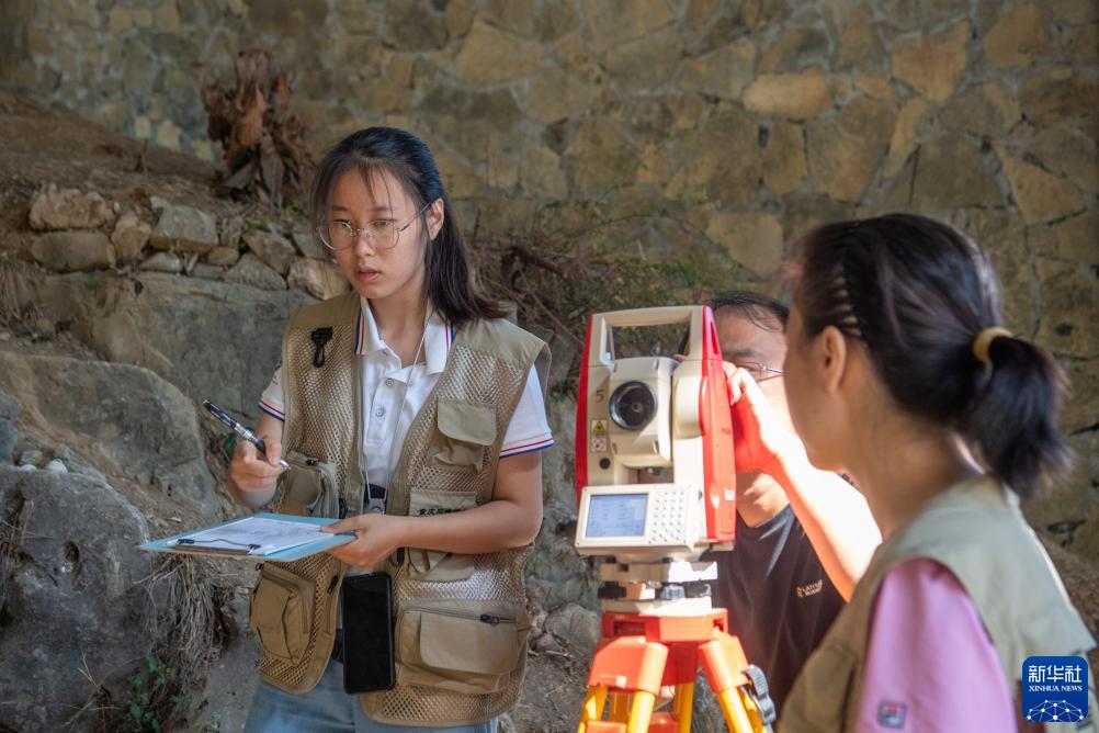 8月16日,工作人員在位于重慶市巫山縣廟宇鎮的龍骨坡遺址上開(kāi)展勘測工作。