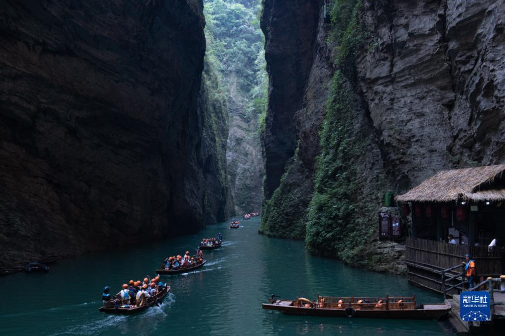 湖北省恩施土家族苗族自治州鶴峰縣森林覆蓋率高,空氣清新,氣候宜人。位于該縣容美鎮的屏山峽谷,全長(cháng)約18公里,峰巒與河谷高差達千米,最窄處僅五尺,形成罕見(jiàn)的峽谷和地縫特色風(fēng)光,碧水、輕舟與絕壁、森林相映成趣,每年吸引眾多海內外游客前來(lái)觀(guān)光。