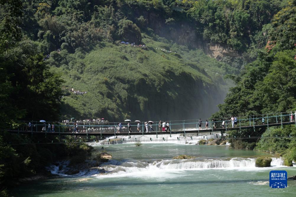 初秋時(shí)節,位于貴州省安順市的黃果樹(shù)瀑布景區進(jìn)入一年中的最佳觀(guān)賞期。大瀑布奔騰而下、氣勢磅礴,前來(lái)觀(guān)賞游玩的游客絡(luò )繹不絕。