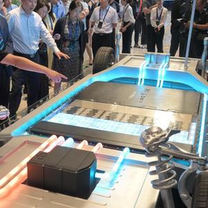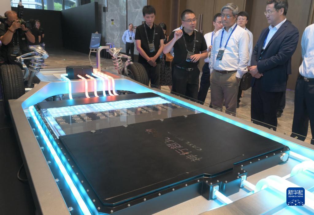 8月16日,工作人員向參觀(guān)者介紹寧德時(shí)代發(fā)布的神行超充電池。