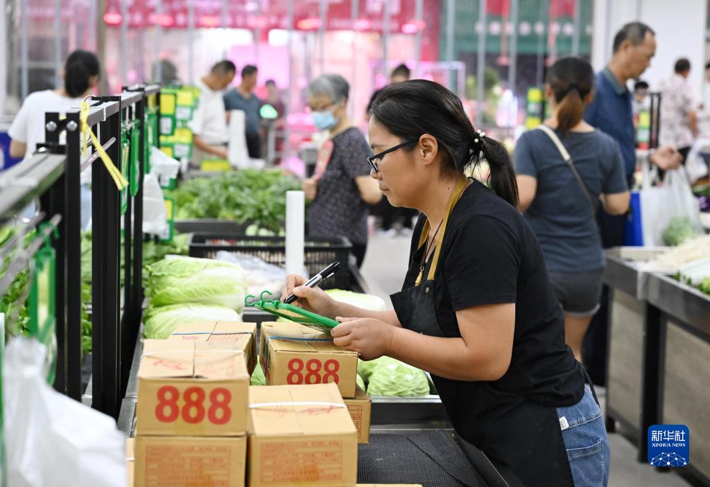 8月17日,余青青在樅陽(yáng)縣青園心生鮮食品配送中心記錄商品信息。