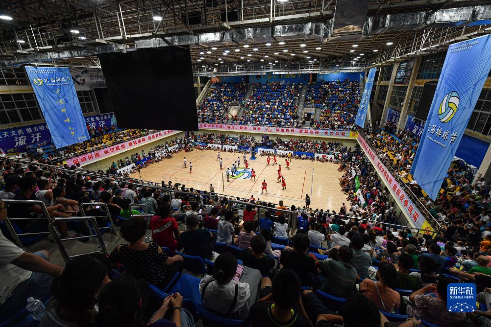 觀(guān)眾在文昌排球館觀(guān)看“村排”比賽(7月3日攝)。