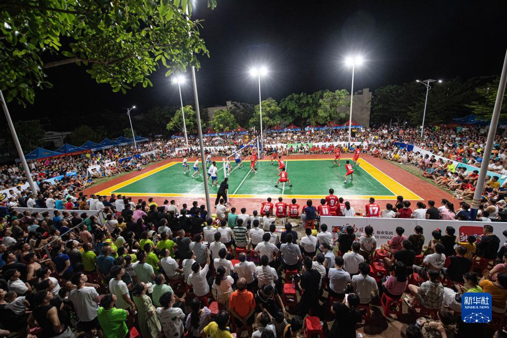 觀(guān)眾在海南省文昌市龍樓鎮觀(guān)看東郊鎮隊對戰公坡鎮隊的比賽(7月1日攝)。