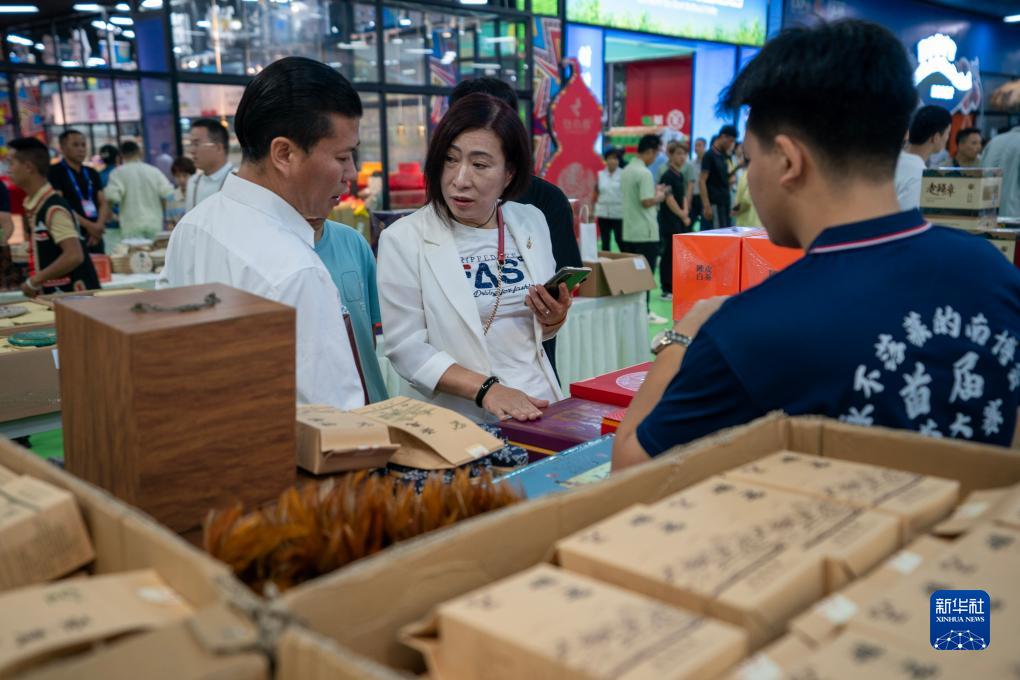 8月17日,一名茶葉采購商(中)在南亞茶葉節上咨詢(xún)采購茶葉。