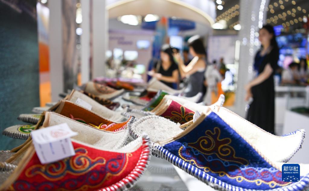 8月17日,參觀(guān)者在交流合作館吉爾吉斯斯坦展區了解特色商品。