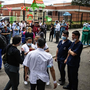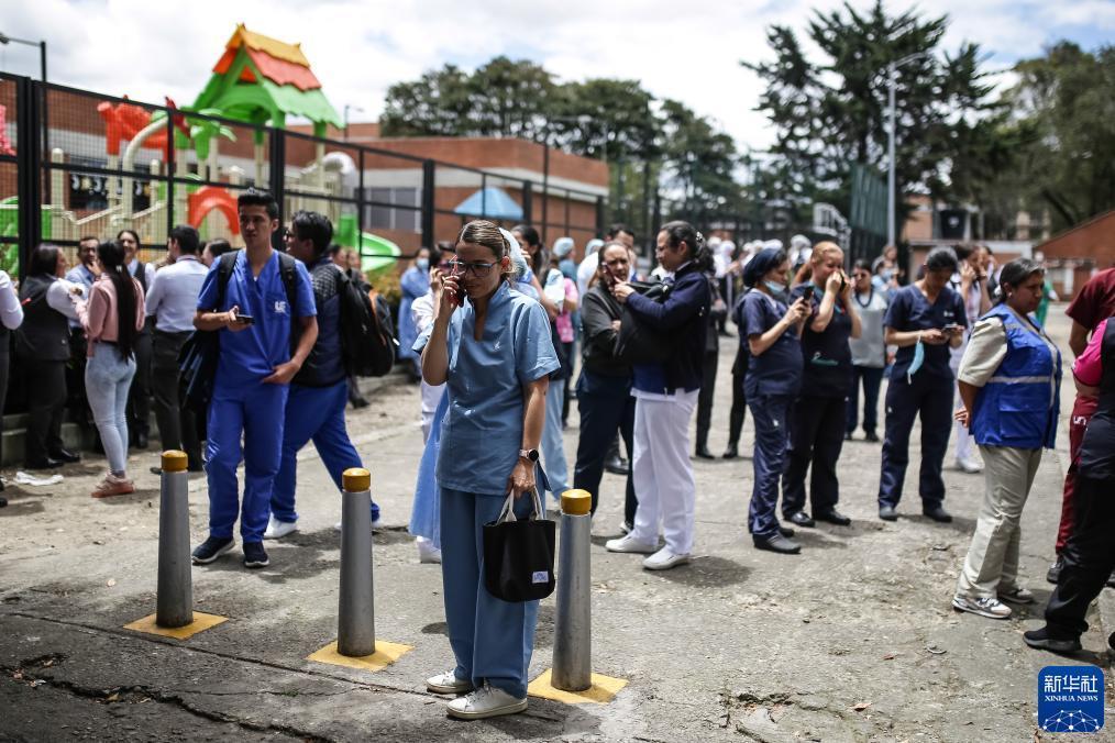 8月17日,在哥倫比亞首都波哥大,人們在地震發(fā)生后的街頭避難。