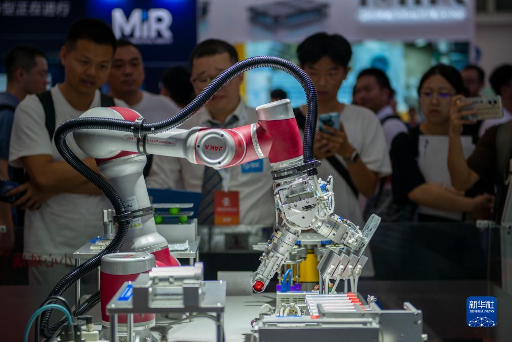 這是8月17日在2023世界機器人大會(huì )現場(chǎng)拍攝的一款拾放抓手演示裝置。
