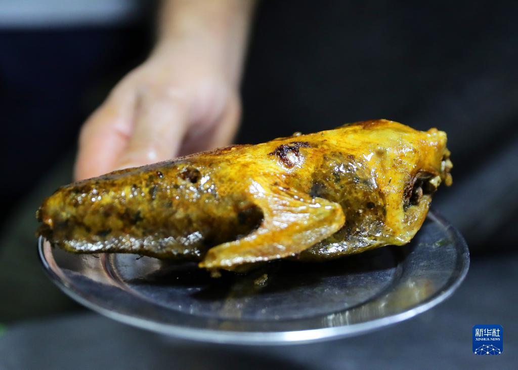 這是埃及開(kāi)羅哈里里市場(chǎng)夜市的一家店鋪售賣(mài)的烤鴿子(7月28日攝)。