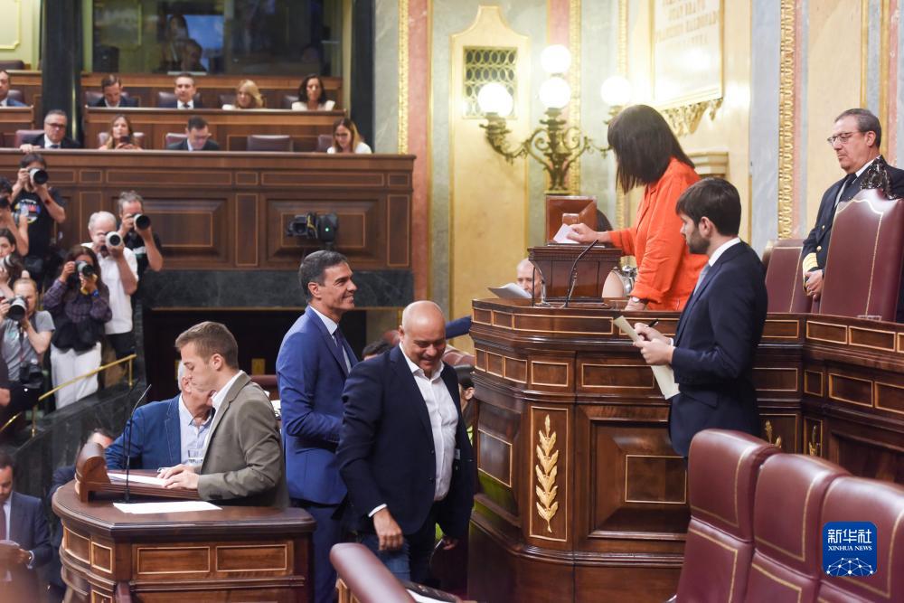 8月17日,西班牙代理首相佩德羅·桑切斯(中)在位于馬德里的議會(huì )進(jìn)行投票。