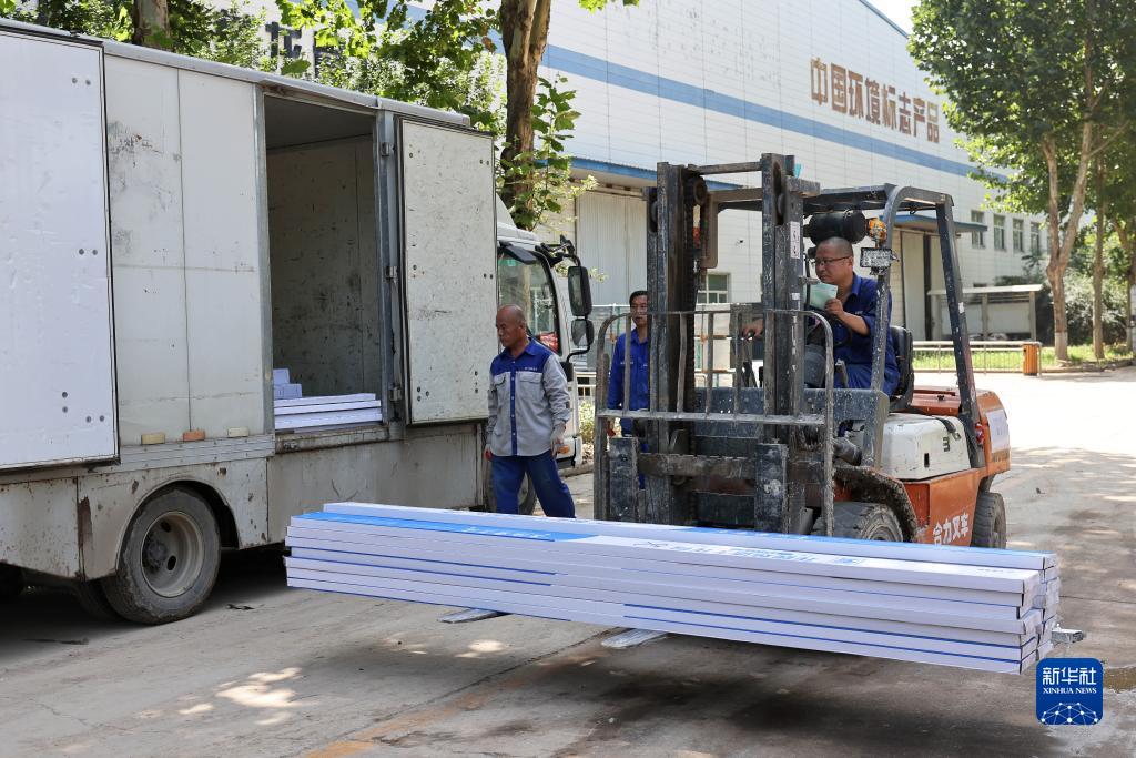 8月19日,在北新集團建材股份有限公司涿州分公司,工人準備將產(chǎn)品裝車(chē)發(fā)貨。