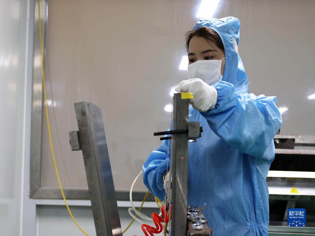 8月19日,工人在涿州市柯林電子產(chǎn)品有限公司散熱冷凝膠車(chē)間工作。