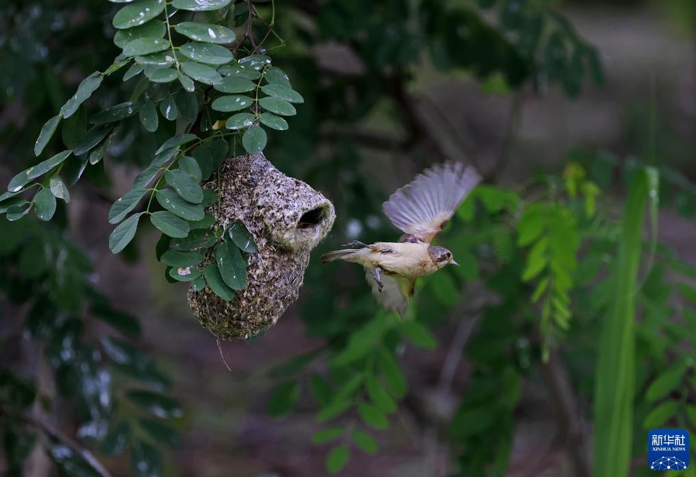 8月19日,一只中華攀雀成鳥(niǎo)飛離巢穴外出捕食。