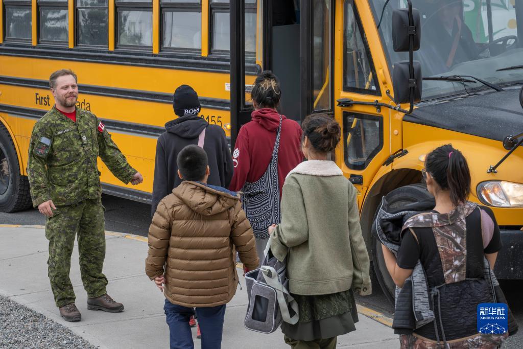 8月18日,加拿大武裝部隊人員在西北地區耶洛奈夫機場(chǎng)協(xié)助居民疏散。