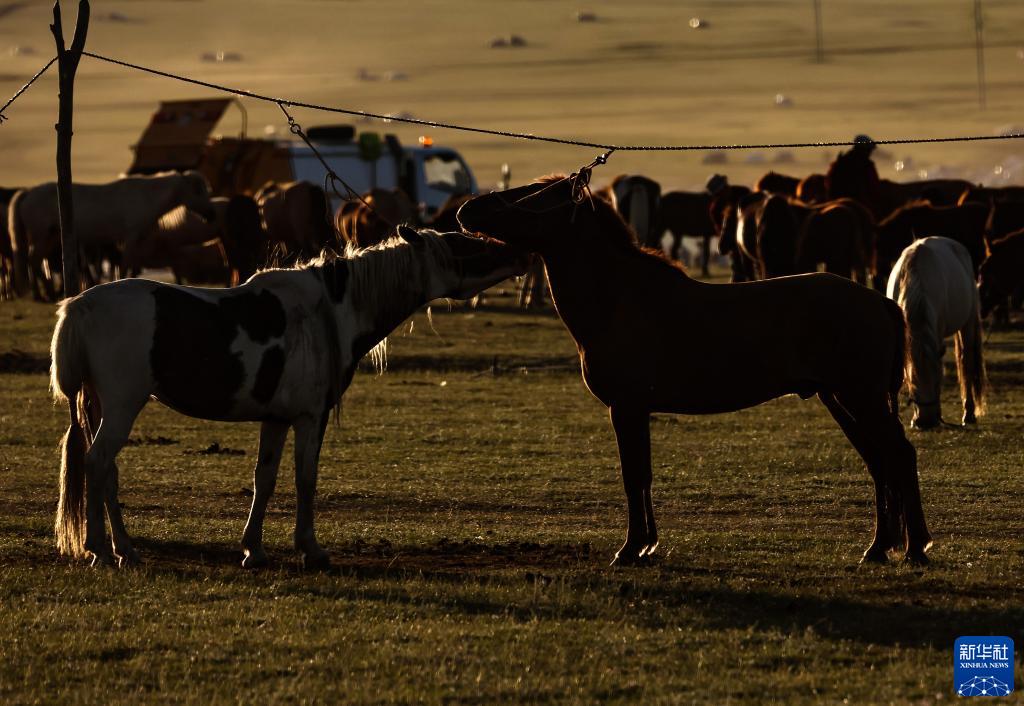 散去了白天的喧囂,距離蒙古國首都烏蘭巴托40多公里的泰吉山谷又恢復了往日的寧靜,夕陽(yáng)給山谷和牧場(chǎng)披上了金色的盛裝。參加2023年度“游牧民族”世界文化節的人們,有的選擇在此宿營(yíng),等待次日繼續參加文化節的各種活動(dòng),有的選擇駕車(chē)返回烏蘭巴托或附近的牧點(diǎn)。牧人們將放牧的馬匹收攏并帶回家中,不知疲倦的孩子們繼續在夕陽(yáng)中嬉戲打鬧。