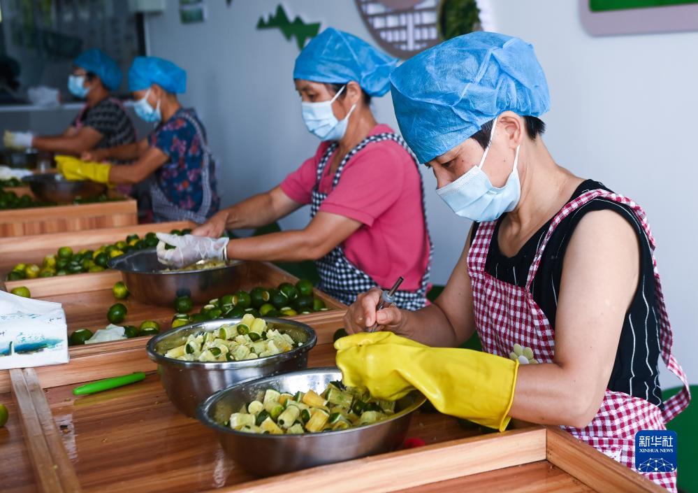8月20日,在浙江省建德市三都鎮松口村的小青柑共富工坊,工人忙著(zhù)開(kāi)果、挖果。