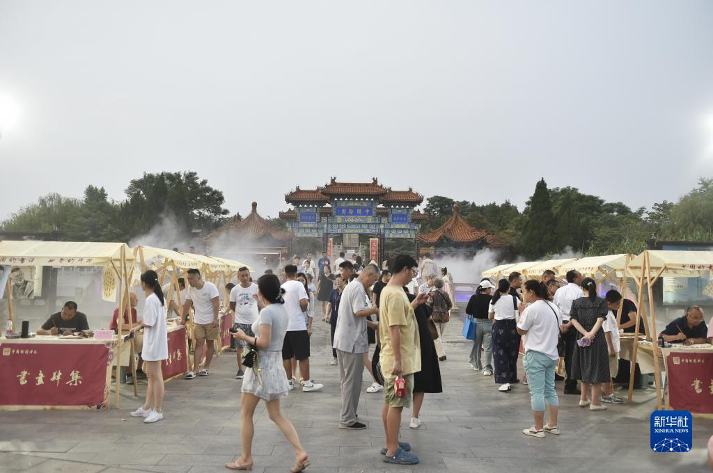 暑期以來(lái),位于河南省開(kāi)封市的中國翰園碑林景區利用周末舉辦“書(shū)畫(huà)肆集”特色文化活動(dòng),邀請書(shū)畫(huà)家現場(chǎng)揮毫潑墨,獨特的文化大餐吸引市民和游客前來(lái)駐足觀(guān)賞、游園休閑。